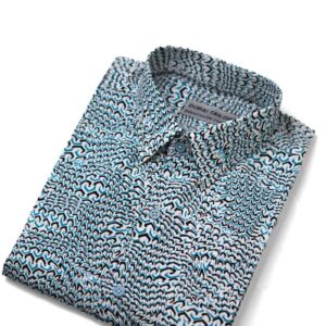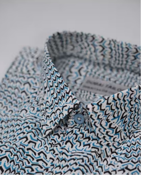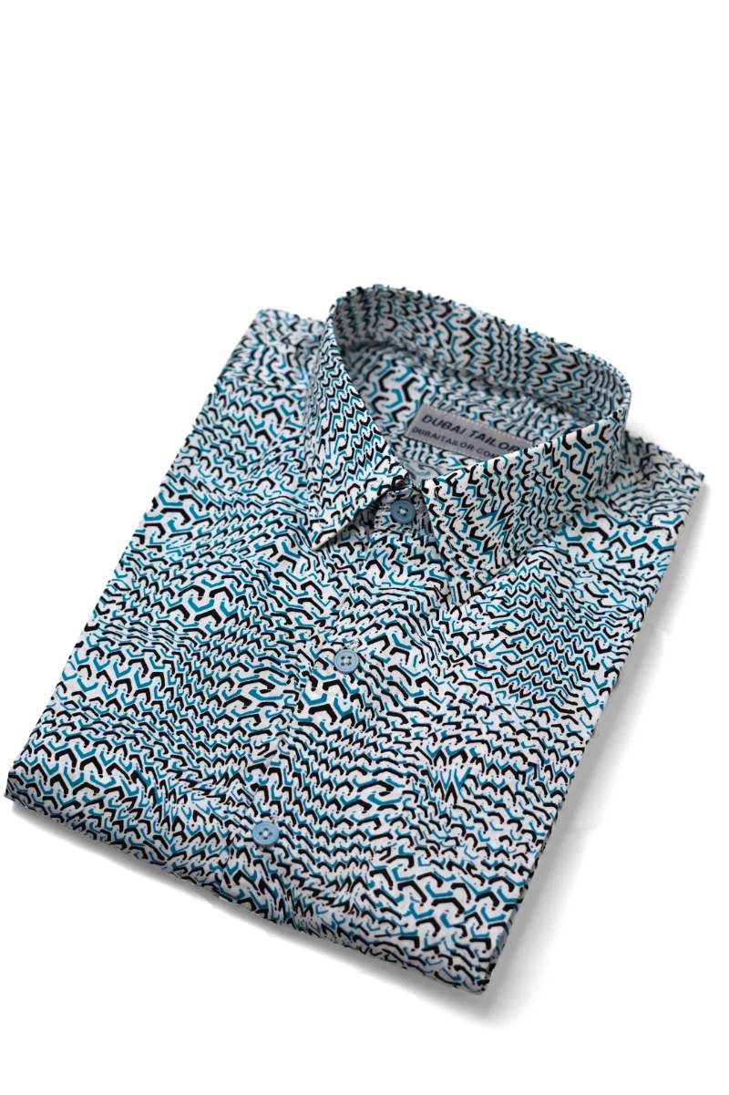 The Maze Luxe Shirt by Dubai Tailor is for those who like to stand out without shouting. Its flowing maze-like pattern in black, white, and soft blue feels like wearable art — intricate, modern, and just a little mysterious. Made from a light, breathable fabric, it’s as comfortable as it is striking, whether you’re heading to a rooftop dinner or a weekend brunch.